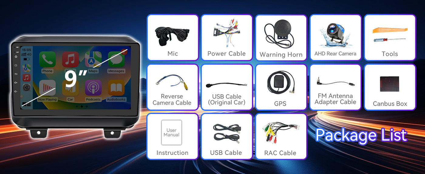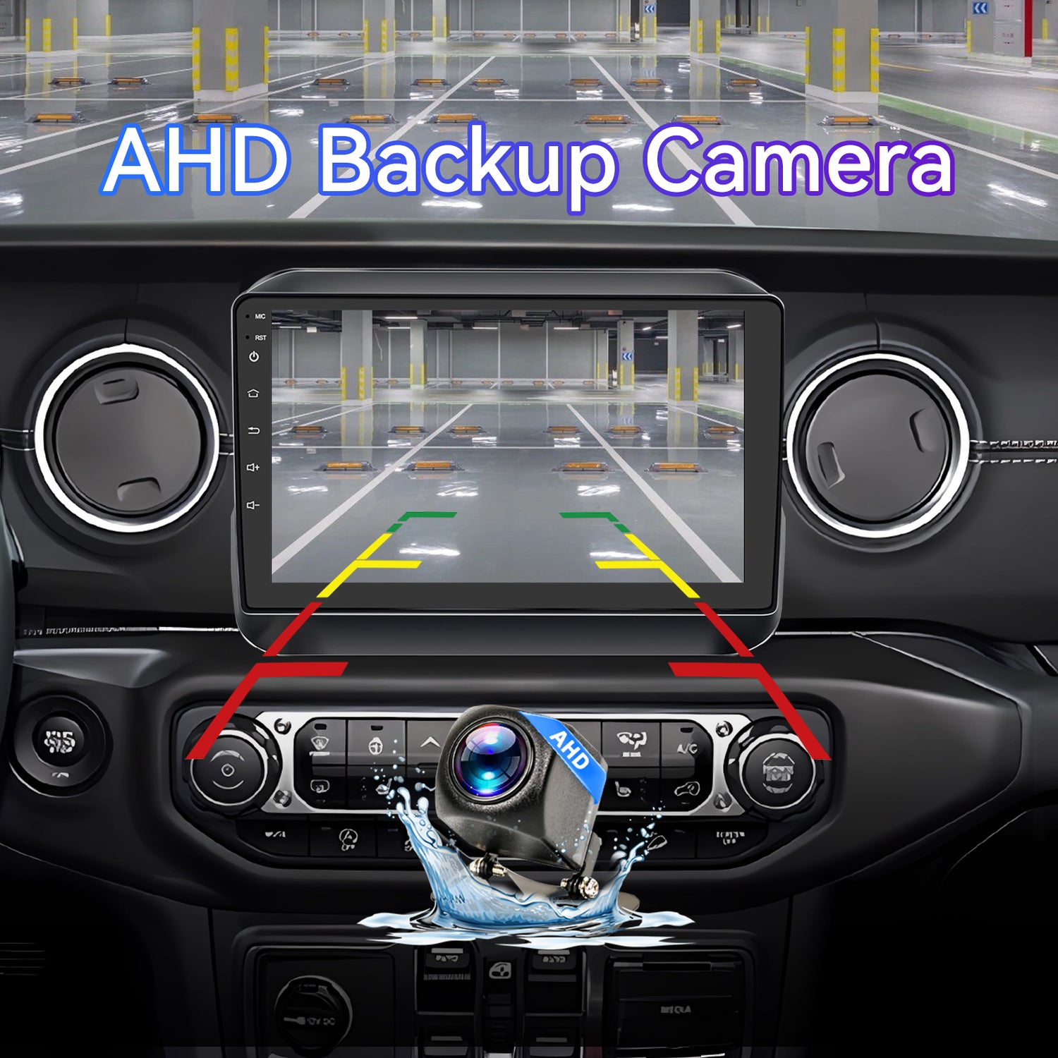 - 9 Inch Car Radio Compatible with Jeep Wrangler JL 2018 2019 2020 2021 and compatible with Jeep Gladiator JT 2020 2021. Runs on Android 13 system, 2GB + 64GB of storage, it ensures smooth performance for navigation, music, and more. The 9-inch touch screen with 1280x720 resolution provides a sharp and clear display. Note: Does not support factory backup camera; an aftermarket camera is required for reverse functionality (Included).