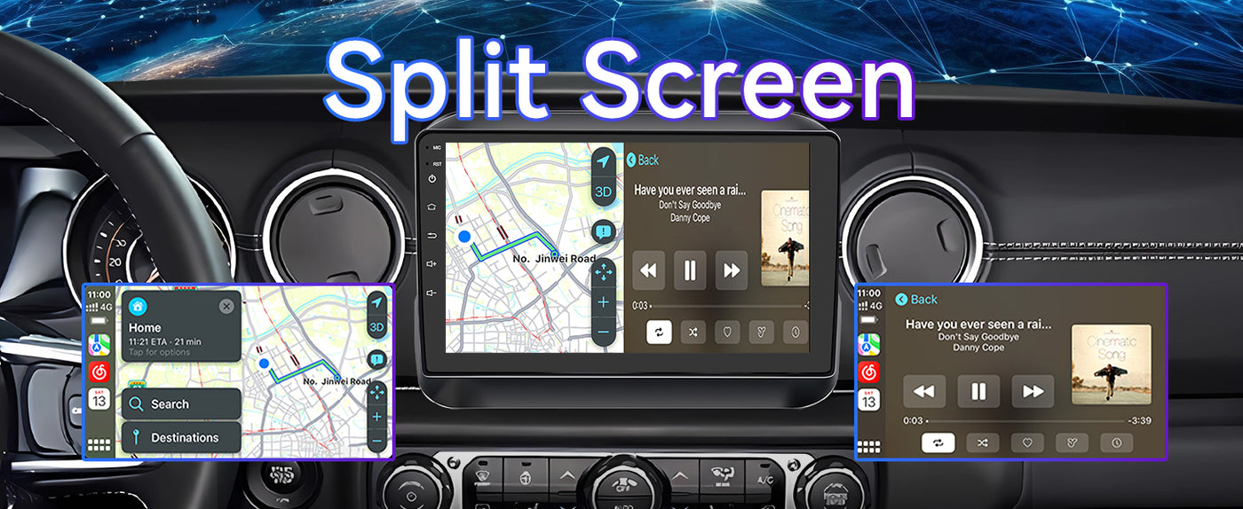 ✅ Yes, it supports split-screen mode—for example, you can view navigation and music simultaneously.