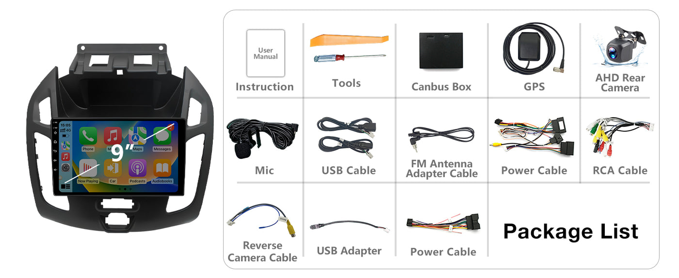 - 【Applicable Car Models】 The car stereo is compatible with Ford Transit Connect 2014–2018. Before purchasing, please check your car's console and year to confirm compatibility. If you are not clear, please provide: 1. Your car's model and year, 2. A picture of your car console.