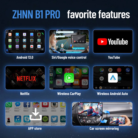 ZHNN Android 9 Wireless CarPlay Dash CAM 1080P HD 4+64——Tbox AR