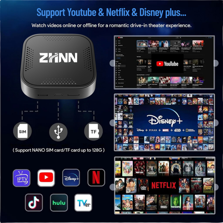 ZHNN B2 Carplay AI Box Carplay AI Box Support SIM &TF Card for OEM Wired Carplay/Android Auto