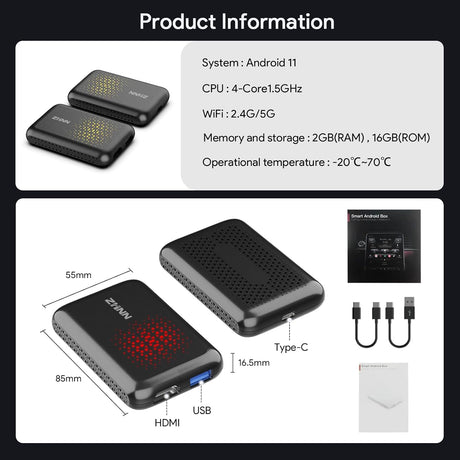 ZHNN Android 11 Wireless Carplay Adapter Supports HDMI Output