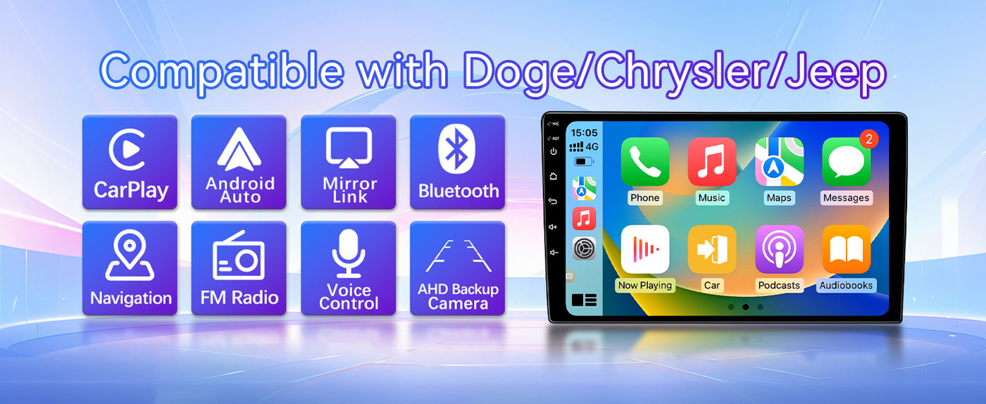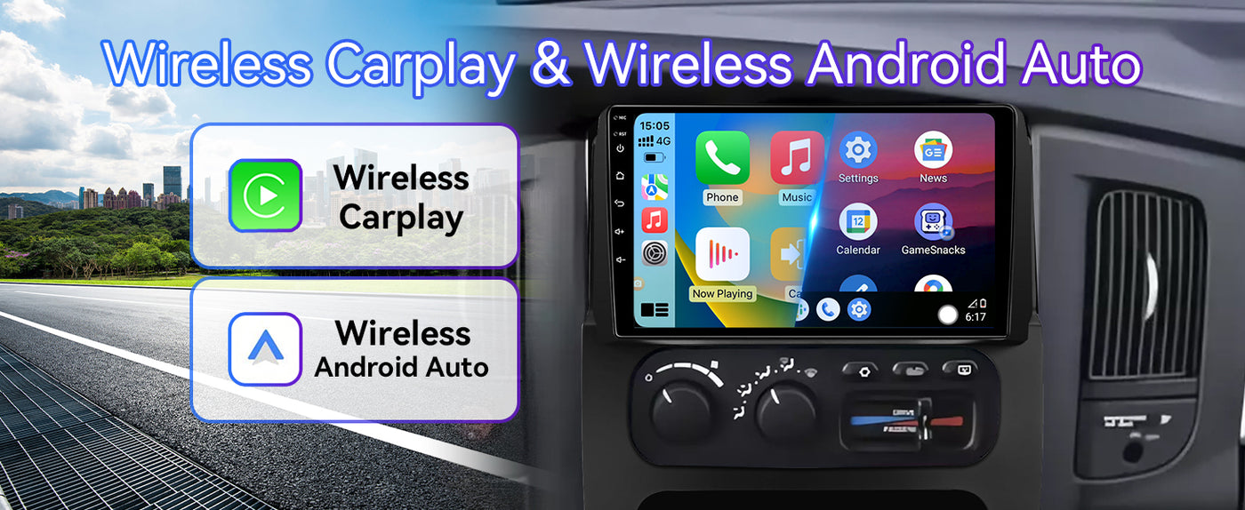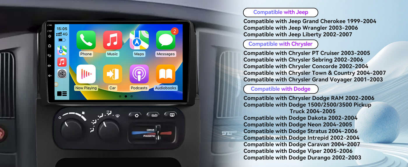 Dodge RAM 1500/2500 (2002-2005), Dodge Caravan (2004-2007), Jeep Grand Cherokee (1999-2004), Jeep Wrangler (2003-2006), Chrysler Town&Country/PT Cruiser (2003-2006) - 📱 Android 13 + 9" Touch