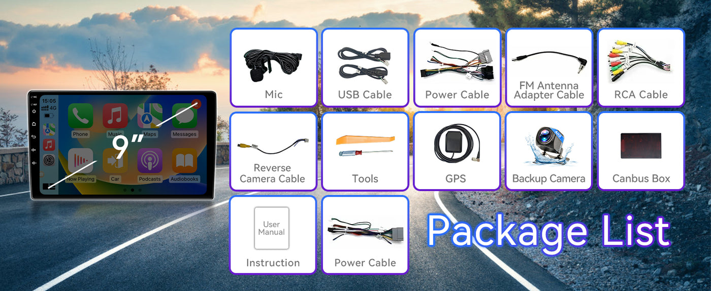 - Android 13 System: This car stereo features a 9-inch IPS touch screen with an upgraded Android 13 operating system, a 4-core CPU processor, and 2GB + 64GB memory. It offers built-in Bluetooth for hands-free calling and music streaming, as well as a Mirror Link function for projecting phone content onto the radio touchscreen