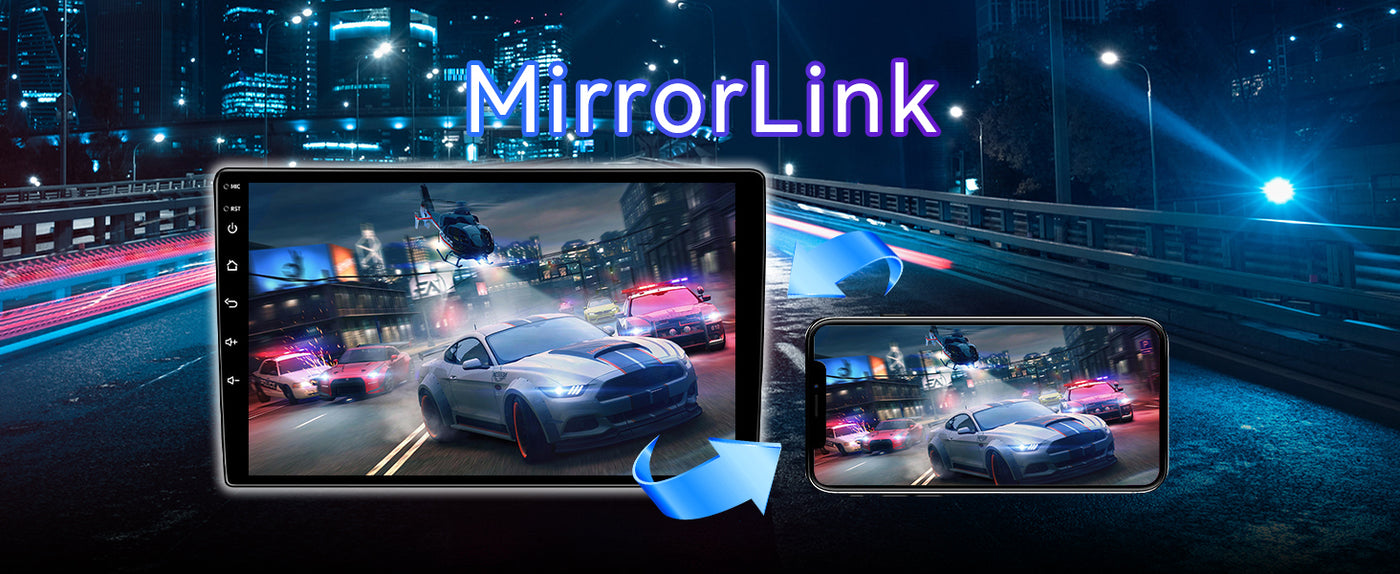 Yes, it supports Mirror Link for Android and iOS, allowing you to display videos, maps, and apps on the 9-inch touchscreen.