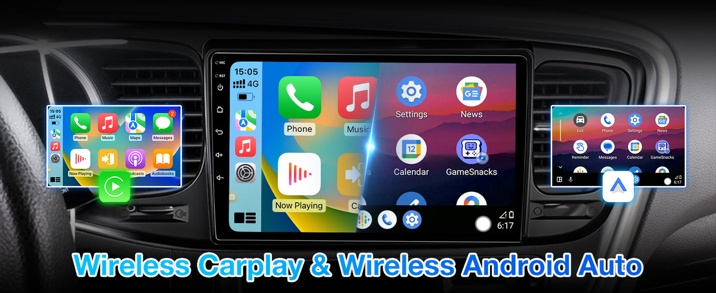 - 🔗 Wireless CarPlay & Android Auto – Easy access to calls, music &