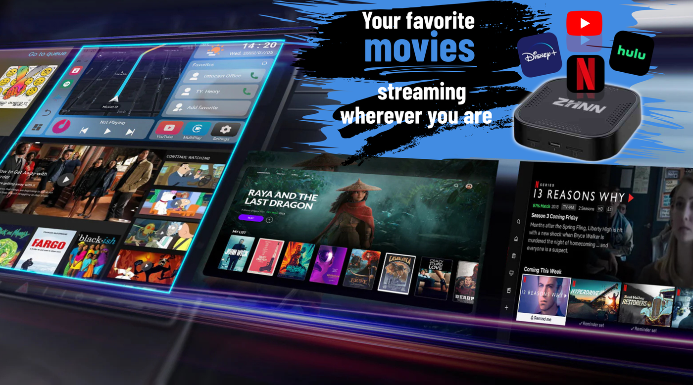 Watch anything from your favorite streaming platform on your car's display screen. Connect The ZHNN B1 Pro to any CarPlay enabled device and instantly start enjoying it!
