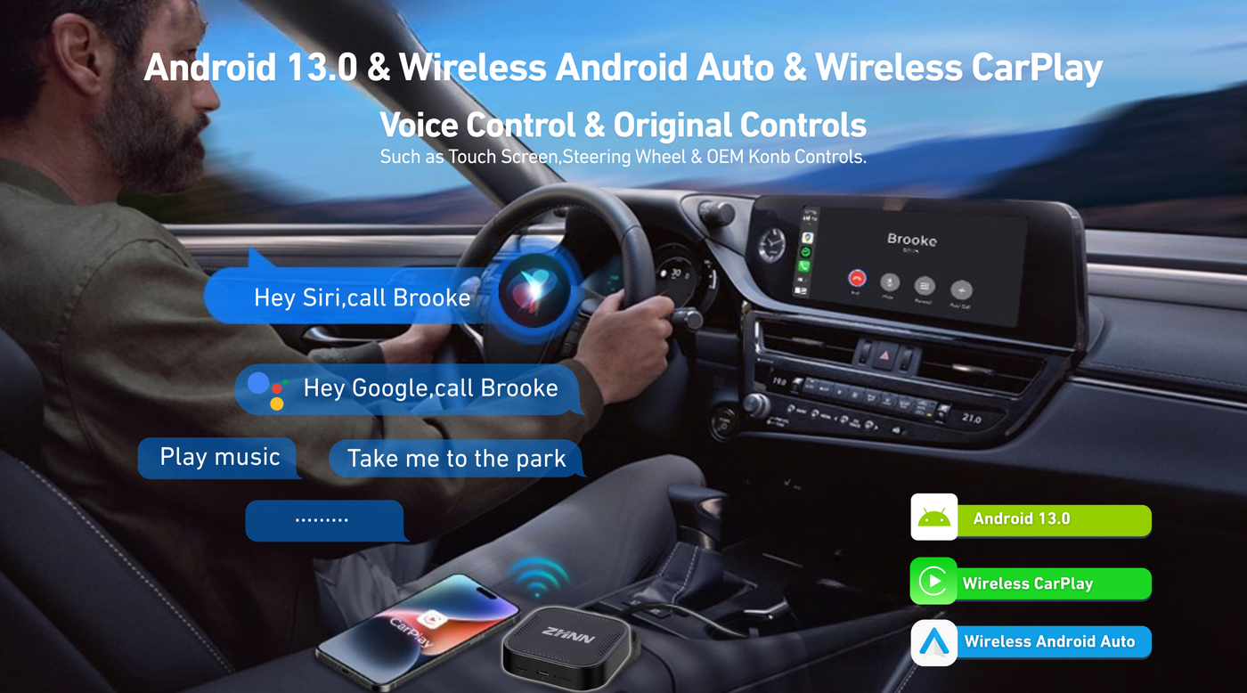 ZHNN B1 CarPlay AI Box for Cars with Wired Carplay/Android Auto