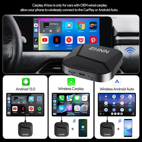 ZHNN CarPlay AI Box Y1P for OEM CarPlay/Android Auto Car Radio