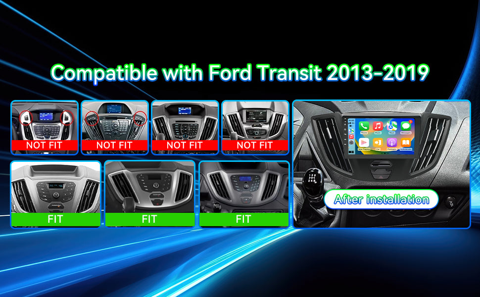 - 【Perfectly compatible with Ford Transit 2013-2019】This 9-inch Android 13 car audio system is designed specifically compatible with Ford Transit 150 250 350 (2013-2019), achieving perfect compatibility. Please check your vehicle's year, size, and dashboard shape to ensure compatibility. Enjoy a hassle-free installation experience with our professional guidance.