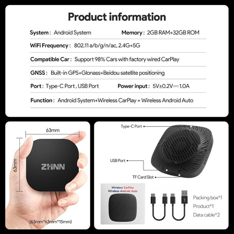 Renew ZHNN Android 12 Smart Box Fit for OEM Wired CarPlay Function