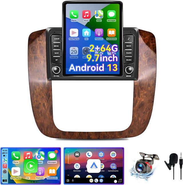 9.7 inch Car Radio Compatible with Chevrolet GMC 2007 2008 2009 2010 2011 2012 2013 2014, 2+64G Android 13 Car Stereo with Wireless CarPlay Android Auto, Bluetooth, WiFi, GPS, SWC, Backup Camera