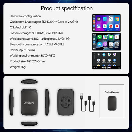 Renew ZHNN Android 12 Smart Box Fit for OEM Wired CarPlay Function