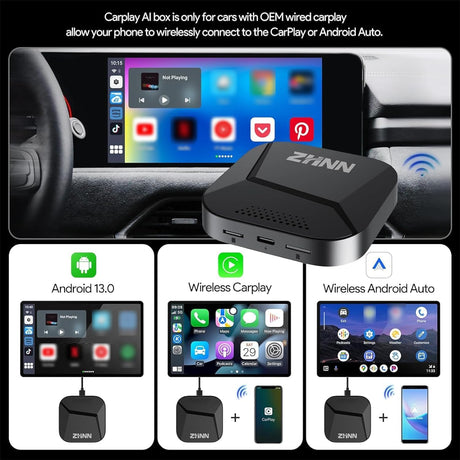 ZHNN B1 CarPlay AI Box for Cars with Wired Carplay/Android Auto