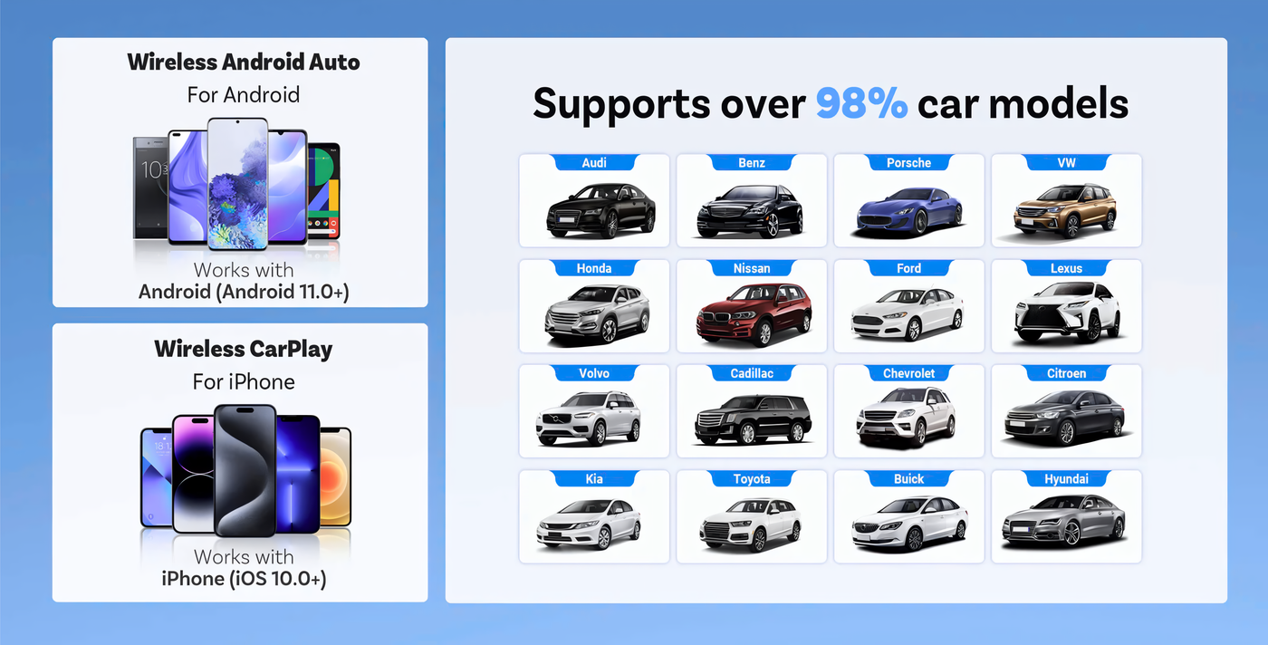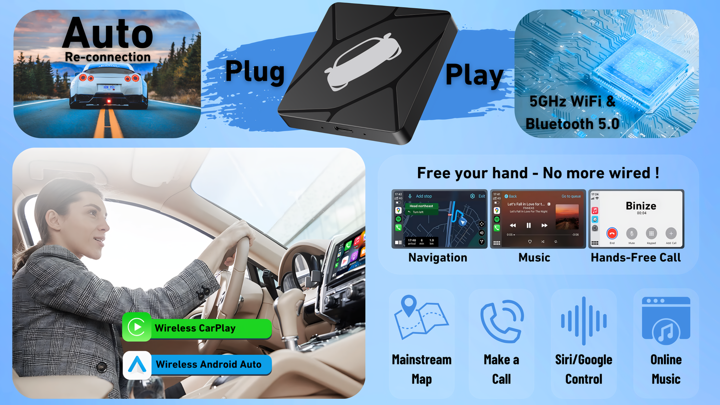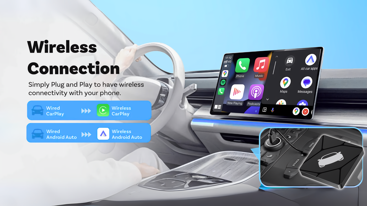 - For Wireless CarPlay: The wireless CarPlay adapter offers cable-free connectivity, integrating your iPhone with your car's infotainment system for effortless navigation, communication, and entertainment on the go.
